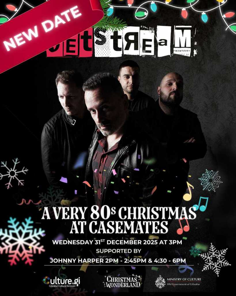Los Servicios Culturales de Gibraltar (GCS), en nombre del Ministerio de Cultura, informan del aplazamiento de la Navidad muy ochentera con Jetstream este sábado, debido al pronóstico de fuertes lluvias.