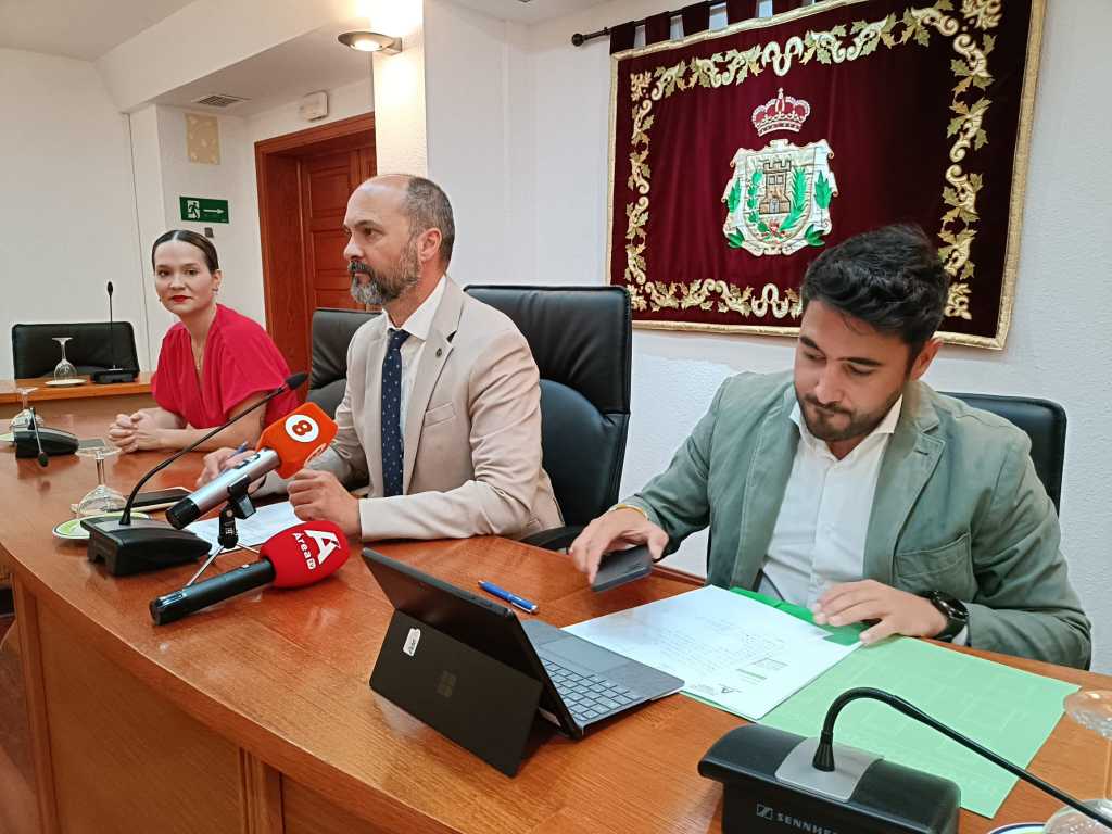 Una comparecencia de prensa en la que Alconchel ha estado acompañado de la primera teniente de alcalde, Sara Lobato; y el portavoz municipal del PP y concejal de Seguridad Ciudadana, Antonio Dávila.