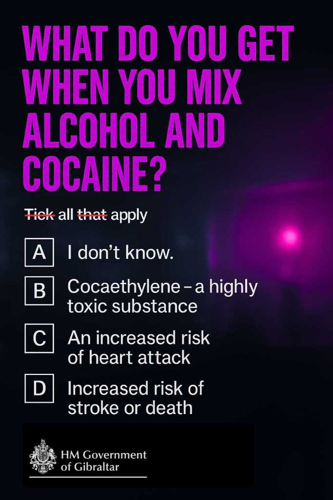 El Gobierno de Su Majestad (HMGoG) ha lanzado hoy una campaña de concienciación pública que destaca los peligros del consumo de cocaína. Esta campaña, que cuenta con la participación de varias agencias, es fruto del trabajo del Consejo Asesor sobre Drogas, presidido por el Honorable Ministro Santos, diputado del GMD.