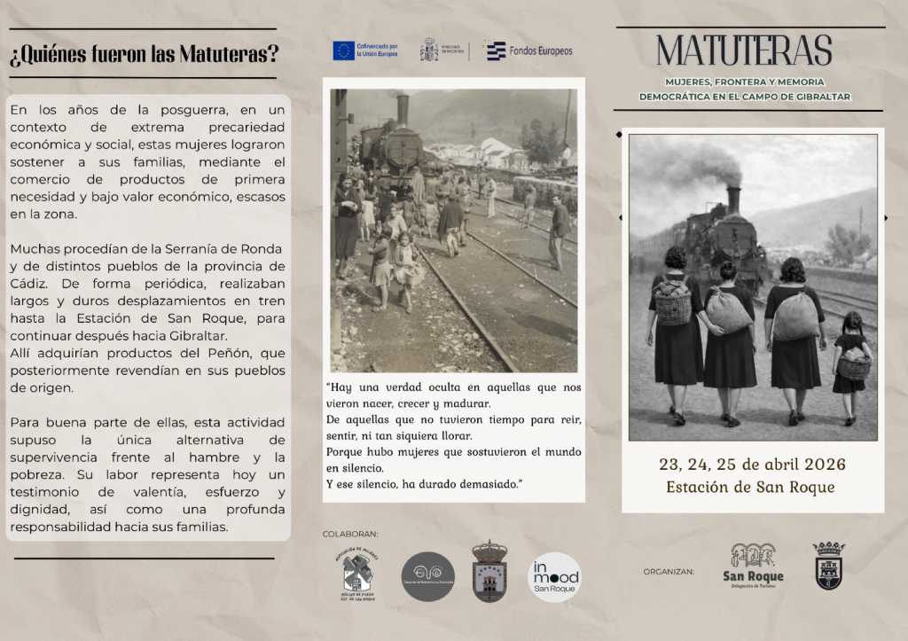 Los días 23, 24 y 25 de abril, en la antigua Estación de Ferrocarril, se va a desarrollar Matuteras, con ponencias de expertos, de periodistas y también testimonios de algunas de Matuteras y también de hijas de Matuteras que vivieron aquella etapa tan dura pero tan importante para el reconocimiento de toda la barriada y de todo el Campo de Gibraltar.