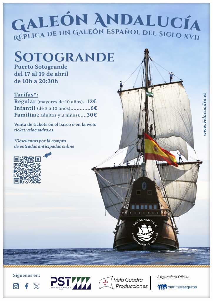 16 de abril de 2026.- El Galeón Andalucía ha atracado en la mañana de hoy sobre las 10,00h en Puerto Sotogrande. La embarcación podrá ser visitada únicamente durante este fin de semana del 17 al 19 de abril.