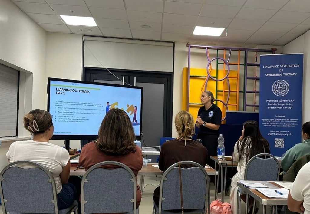 El personal de todo el colegio, incluyendo profesorado, fisioterapeutas de GHA y miembros de la Agencia de Atención, participó en la formación intensiva de cuatro días, en la que se utilizaron la piscina accesible de GSLA, así como la piscina y las aulas del colegio. Las sesiones introdujeron los principios de Halliwick, la seguridad en el agua, las técnicas de movimiento terapéutico y las estrategias para promover la independencia, la motricidad y el bienestar de los alumnos mediante la hidroterapia.
