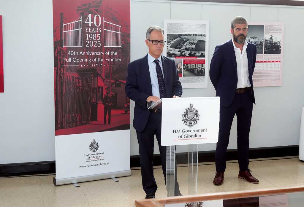 El Viceministro Principal, Joseph García, ha inaugurado hoy oficialmente una nueva exposición en el John Macintosh Hall para conmemorar el 40º aniversario de la apertura total de la frontera terrestre con España. Esta exposición del Archivo Nacional de Gibraltar detalla las profundas repercusiones sociales, culturales, económicas y políticas de este acontecimiento histórico, que siguen resonando mientras Gibraltar perfila su relación futura con la Unión Europea.