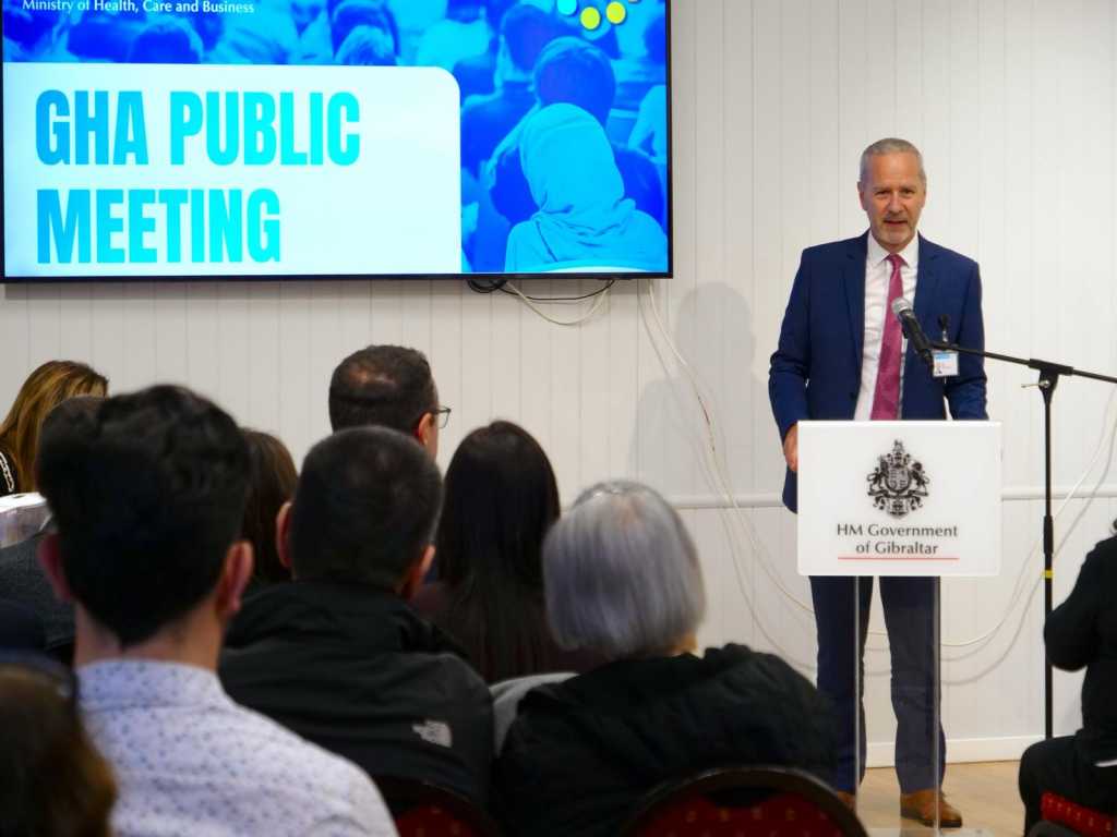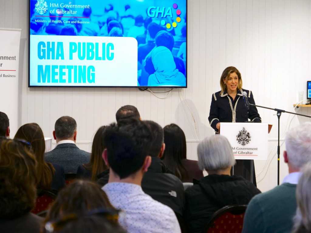 La ministra de Sanidad, Asistencia Social y Empresa, la Honorable Gemma Arias-Vasquez, organizó ayer una concurrida reunión pública de la Autoridad Sanitaria de Gibraltar (GHA) en la Sala Charles Hunt.