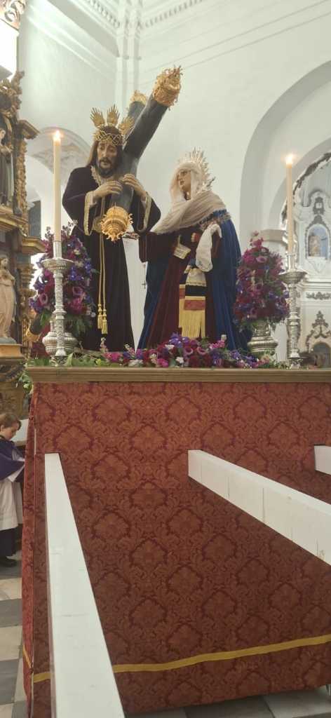 Las imágenes del Cristo Nazareno y de la Virgen de los Dolores, que se encontraban en la Parroquia de Santa María La Coronada tras su restauración, fueron trasladadas este sábado 14 a su sede en la Capilla de la Visitación, desde donde partirán el Jueves Santo en procesión.