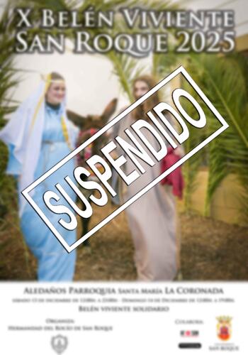 La Hermandad del Rocío de San Roque, ha decido suspender el Belén Viviente de San Roque debido a las previsiones de mal tiempo durante estos días, que impiden tanto su correcto montaje como el desarrollo del mismo en la plaza de Armas.