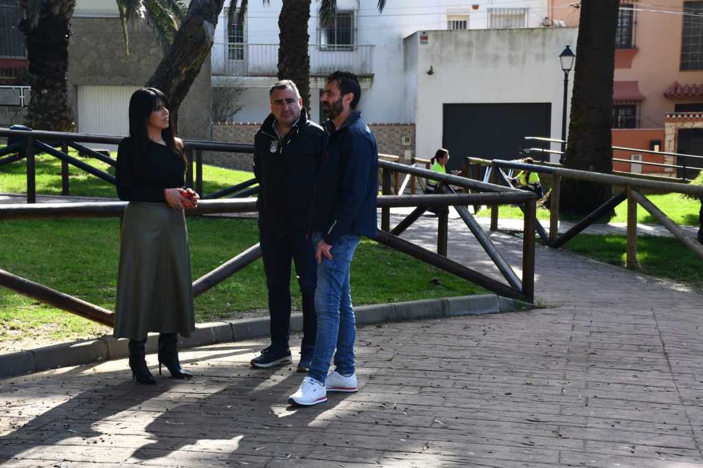 Los tenientes de alcalde de Obras y Servicios, Belén Jiménez, y de la zona de la Bahía, David Ramos, han visitado los trabajos de pintura que se están realizando en la nueva zona de picnic existente a las espaldas del edificio La Rosaleda, en la barriada de Campamento.