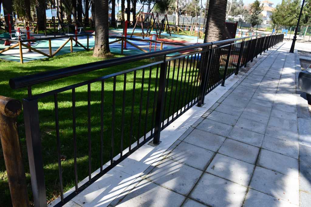 Jiménez junto al teniente de alcalde delegado de la zona de la Bahía, David Ramos, han visitado la zona para supervisar los trabajos de pintura que se están realizando en las barandillas de forja, las farolas, las mesas picnic, en general en los espacios comunes.